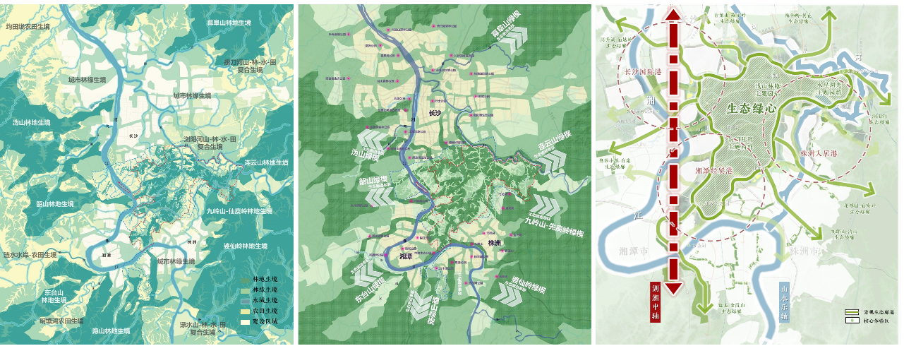 方案提出“大国苑囿,生态绿湾”的概念,对标中国传统苑囿概念,赋予绿心在特色外交、科技创新、生态保育、文化展示方面重要职能;立足推动长株潭一体化进程,创新提出生态文明时代的都市圈发展范式,生态绿湾,为长株潭一体化发展路径提供学理支撑。