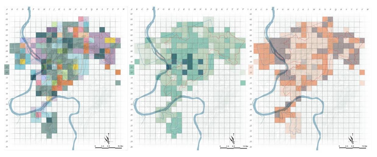 本体系基于全面的现场踏勘,结合卫星影像和无人机航拍信息,充分梳理和识别场地各类生境特征,构建了项目全域197个2X2km基础网格单元。通过整合多层级要素,划分景观特征类别,确定各网格单元的场地敏感度和容纳性(场地敏感度:在应对外部因素造成的变化时,场地的变化幅度和抵抗变化的能力;场地容纳性:特定景观类型或区域对变化的适应程度,判定变化对场地的环境特征是否将产生重大的、毁灭性的影响)。将生态保护红线与场地敏感度评价、城市开发边界与场地容纳性评价分别对位,系统性优化“三线”范围,统筹上位规划中其他要素信息。用更科学合理的标准指导国土空间土地整治和项目的落位实施。