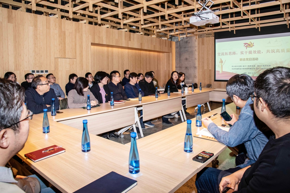 2025年12月16日下午2点30分,设计二院党支部、设计七院党支部联合天津市建筑设计研究院有限公司(简称建院)设计一院党总支,以“交流拓思路、实干提效能、共筑高质量”为主题开展联合党日活动。活动由设计二院党支部组织委员吕放同志主持,40余人参与此次活动。