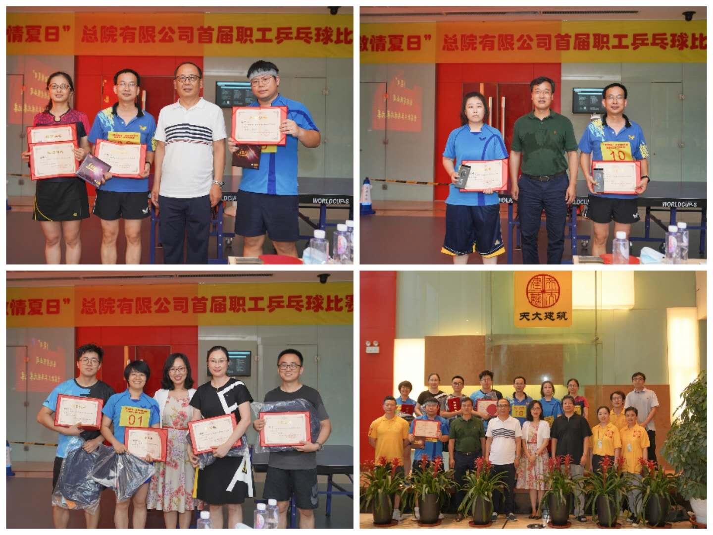 最终,设计三院的周璐和王聪问鼎混合双打冠军,男、女子单打冠军分别由设计八所赵帅和设计三院周璐摘得,院领导向获得名次的选手颁发了证书和奖品。